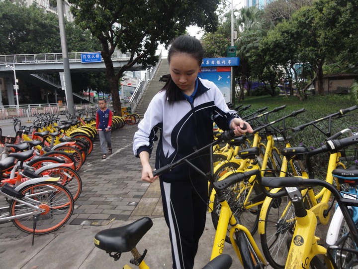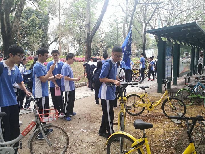 3月4日下午2:30,由团委学生会成员组成的队伍高举实验校旗,浩浩荡荡地从学校出发了。根据前期计划安排,这次活动的主要任务是整理百花、华强北片区共享单车乱停乱放问题,还有在损坏的单车上贴上便利贴予以温馨提醒。沿途,同学们积极主动地整理零散摆放的单车,在损坏的单车上贴上画着笑脸的便利贴提醒使用的人,看着一排排整理过后井井有条的单车,不少行人驻足,不经意间露出肯定的微笑。
