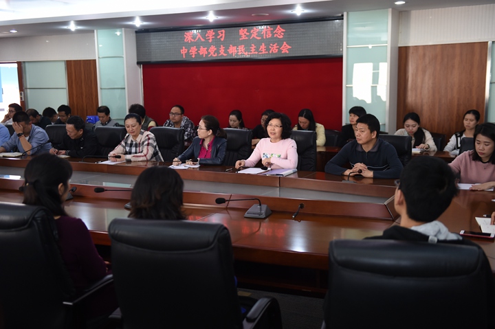 三月的雨,惬意悠闲;三月的风,吹面不寒;三月的光,明媚绚烂;三月的梦,满是香甜。3月7日下午,恰逢全国“两会”期间,为深入学习贯彻十九大精神,为进一步发扬党的优良传统,保持党支部的先进性,中学部全体党员欢聚一堂,开展了主题为“深入学习,坚定信念”党支部民主生活会。会议由中学部党支部伍妙贞副书记主持。