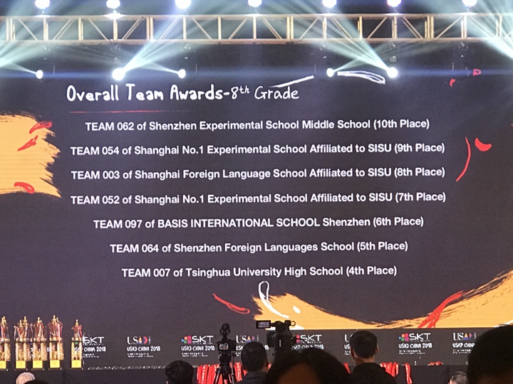 寒假期间,美国学术五项全能(USAP)中国赛在广州香格里拉酒店落下帷幕,我校初二李炳东、杨百川、王欣宇、周子为、田宇、李明罡、黄胤霖、欧丛睿等8位同学组成深圳实验学校中学部代表队,取得团体总分第10名的好成绩,晋级美国总决赛。个人成绩中,李炳东获得科学、艺术、社科、数学等四个科目的单项银奖,同时获得个人总分银奖;杨百川、周子为、田宇分别获得数学单项奖。