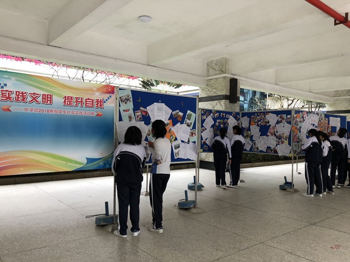 寒假中,全校同学们积极响应学校要求,有的积极帮助老、弱、病、残、幼,开展公益劳动和服务劳动;有的参加深圳义工联组织的活动,深入图书馆、书城、社区服务站等;有的外出旅游或返乡探亲时,对当地民风民俗进行实地了解,亲身感受地域文化、传统年俗的差异,活动内容丰富,活动形式多样,活动成效明显。