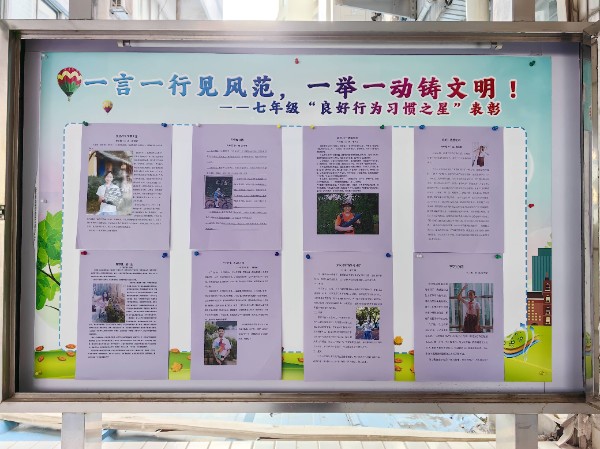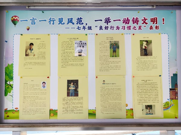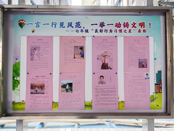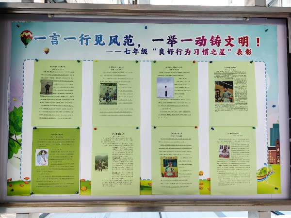 通过一个多月的新生教育活动,各班涌现了一批行为习惯优秀的同学。为了树立典型,彰显榜样力量,促进同学们良好行为习惯的养成,形成优良的级风、班风,增强校园活力,七年级通过各班评选和推荐,产生了年级“良好行为习惯之星”,并通过年级橱窗进行表彰和宣传,引导同学们向榜样学习,做更好的自己!