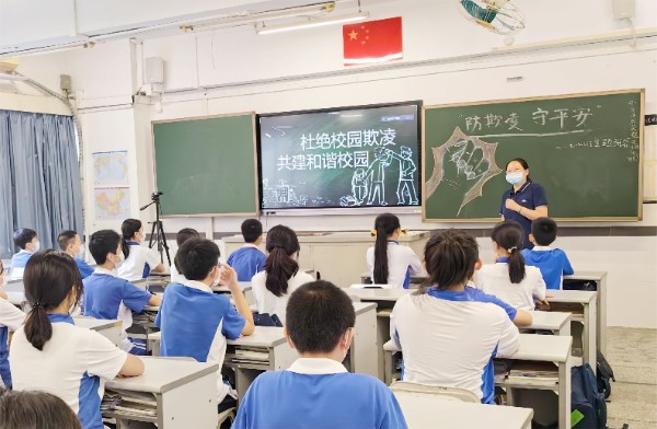 防校园欺凌与未成年人的身心健康、未来成长密切相关,绝不是可以忽视的“小事”。为帮助同学们培养正确的人生观和价值观,杜绝校园欺凌事件的发生。2022年10月10日,各班召开了以“防欺凌,守平安”为主题的班会活动。随后,各班发挥创意绘制与预防校园欺凌内容相关的黑板报,传播正能量。通过相关切实的教育活动,保障同学们的健康成长,为每一个“少年的你”铺设洒满阳光的成长之路。