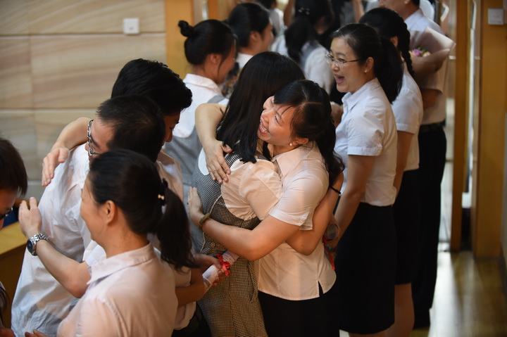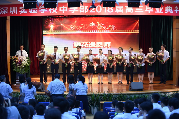 最后,毕业生代表向一路陪伴、辛勤奉献的老师们送上了鲜花,表达最诚挚的感激之情。高三年级全体学生也依次走到老师们身边和老师一一握手拥抱,深情道别,场面感人。(文/高三年级组 图/电教室)