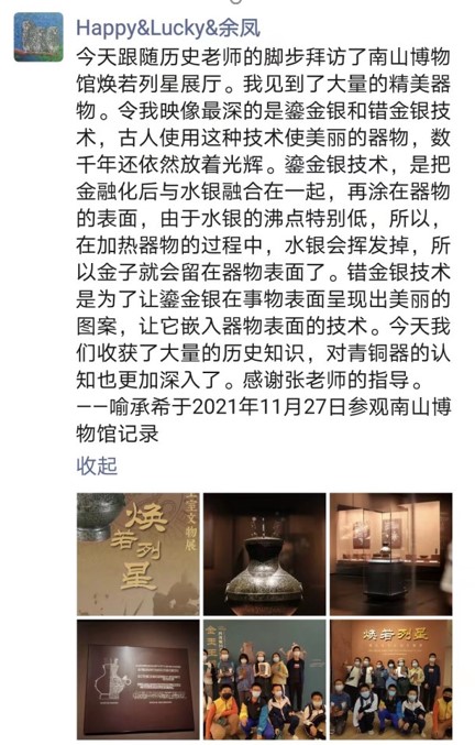 每次参观后,学生们都有不同的感受和触动,有的学生写下一篇篇精彩的观后感,有的学生在朋友圈留下刹那的感受……
