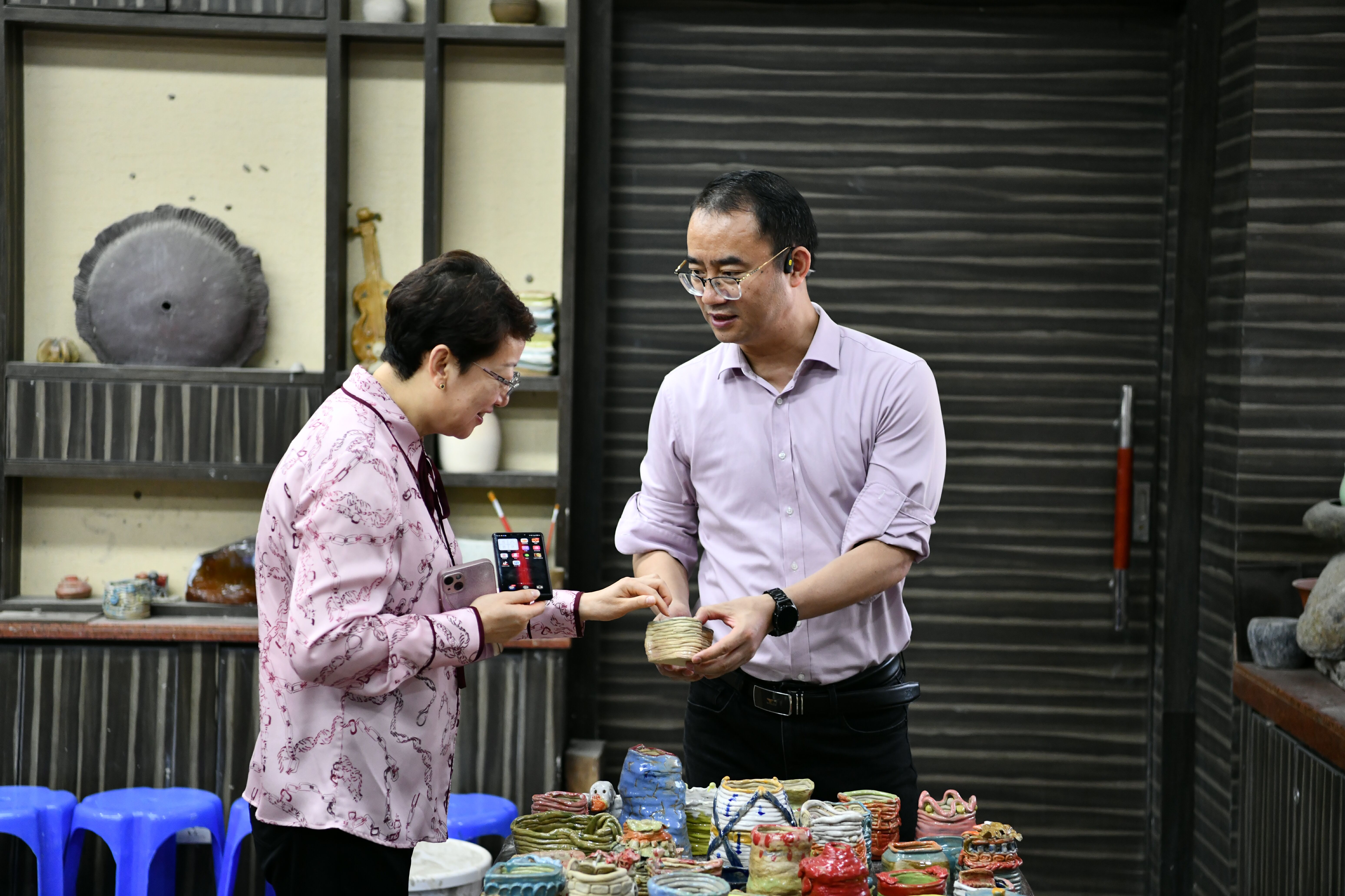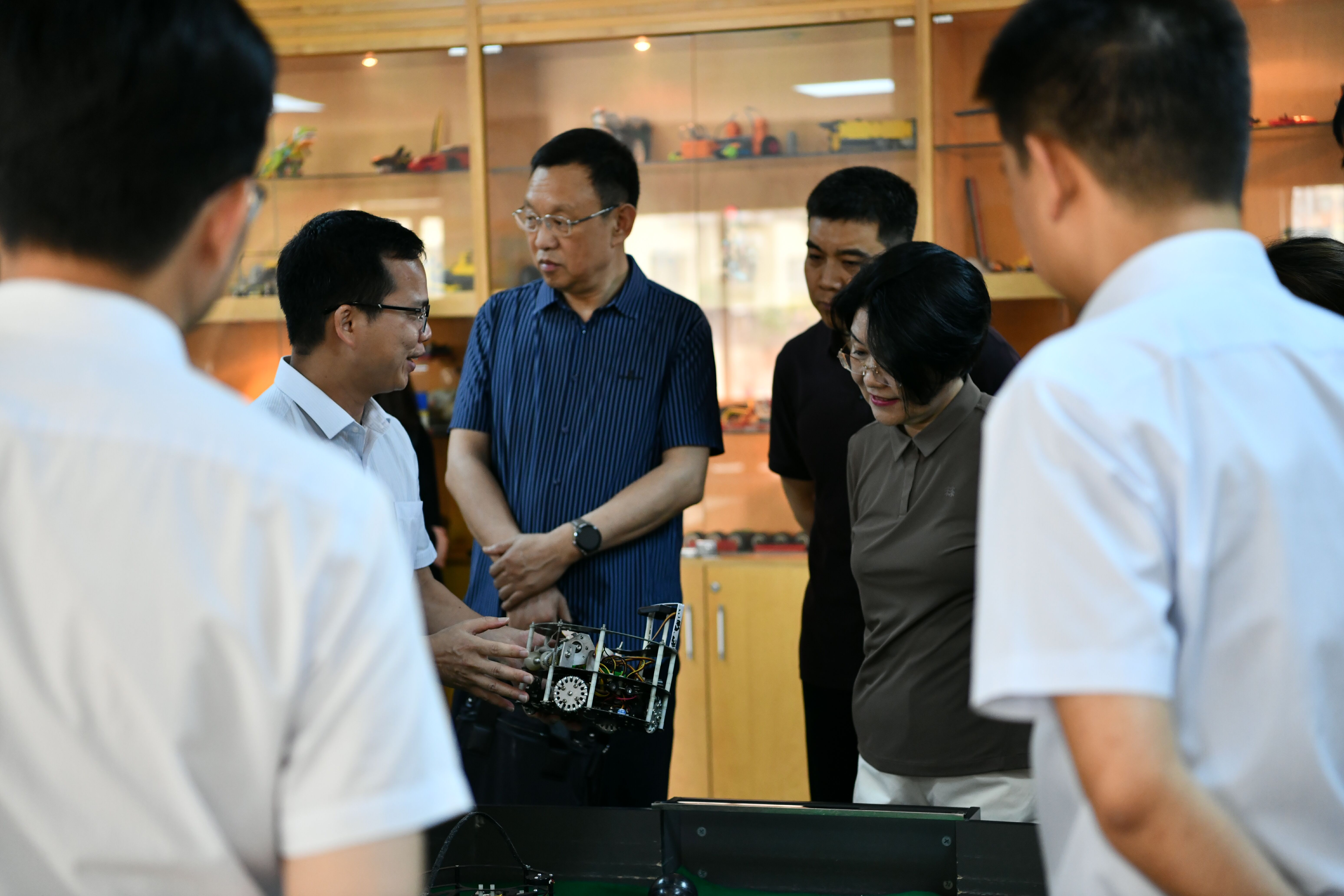 考察团抵达中学部后,走进校史陈列厅,学生处熊珊主任向大家介绍了深圳实验学校的发展历史、办学理念、文化特色等,感受实验文化、领略实验精神。之后,考察团来到陶艺工作室,艺术组熊岩老师对学校的陶艺课程进行介绍,讲解拉坯机的使用、欣赏学生的陶艺作品、体验制作过程。随后,考察团进一步了解了学校科创教育,参观了学生创客作品展和科技活动中心,曾繁均老师介绍了我校机器人社团的发展和成绩。我校自创建以来一直注重对学生的科技创新教育,开展了丰富多彩的科技创新活动,考察团代表们对我校在培养创新人才方面的前沿理念点赞。