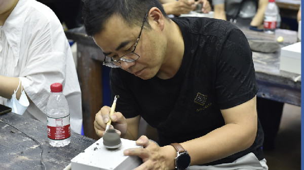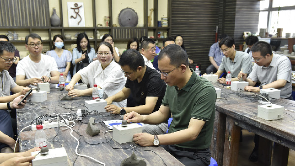 接着代表团来到了陶艺教室,艺术组熊岩老师对陶艺课程进行了介绍,并邀请各位来宾亲手制作,体验富有实验特色的劳动课。来宾们热情高涨,积极参与,大家在拉坯机上尽情创作,感受陶艺制作的乐趣。当得知深圳实验学校多年前就开设了陶艺课时,大家纷纷表达了钦佩之情,赞赏我校的远见卓识,早早就将素质教育落到实处、坚持培养孩子全面发展。
