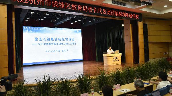 5月30日上午,由杭州市钱塘区教育局组织的校长代表团在浙江省教育学会会长、浙江省教育厅原副厅长韩平,杭州市钱塘区教育局党委书记、局长钱晓华的带领下,一行50余人来到深圳实验学校就集团化办学工作进行考察交流。深圳实验学校党委书记夏育华,副校长、中学部执行校长龙萍等行政干部热情接待了来自远方的客人。