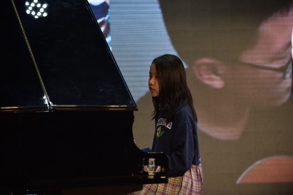 七年级2班周乔之独唱。随着幕布的拉起,来自七年级2班的周乔之同学走上了舞台,她为大家演唱英文歌曲《Memory》。舞台大屏幕上出现了经典歌曲《Memory》的主题背景,伴随着载有大家无数回忆的MV的播放,周乔之同学发挥自如,唱出了美妙的旋律。