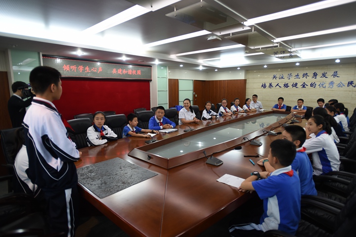 关心学生想法,关注学生成长。“校长见面日”活动是中学部长期坚持开展的一项工作,它搭建了学校与学生沟通的良好平台,让学校能充分地了解同学们的心声,改进工作;同时,让学生参与学校管理,点燃作为学校主人翁的热情,增强他们的民主意识、公民意识,为健全人格的培养打下坚实的基础。(文/学生处 图/电教室)