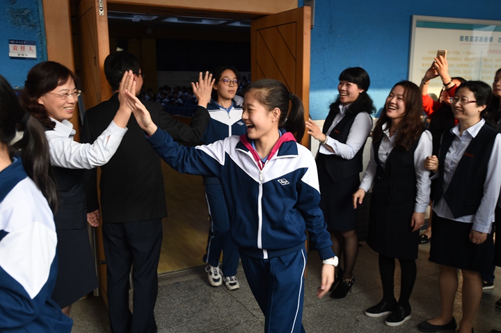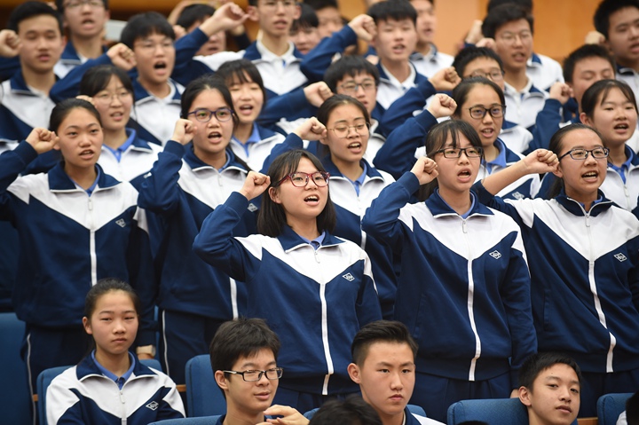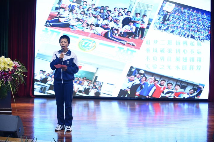 大会在庄严的国歌声中拉开帷幕。全体师生一同观看由初三年级策划、电教室精心制作的电视短片《相约实验》,短片回顾了年级全体师生三年来努力拼搏的历程,片尾,在北京开会的龙校长特地发来视频,为同学们加油,并希望同学们不负父母的期盼,不负恩师的厚望,不负学校的荣光,不负青春,奋力拼搏。