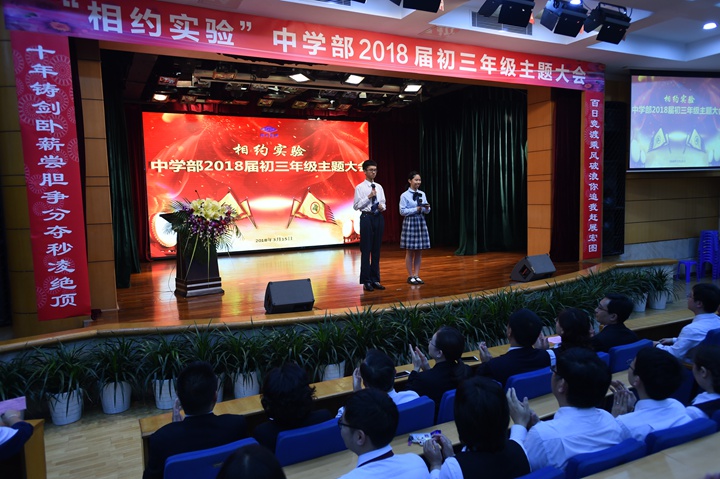 3月15日下午,中学部初三年级在五楼小礼堂举行了“相约实验”主题年级大会,学校领导和初三年级全体师生参加了大会。