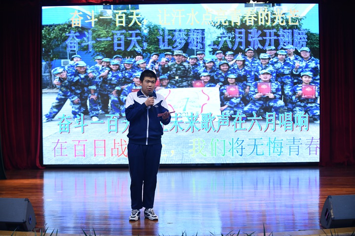 年级主任潘浩老师作为教师代表也为同学们送上温馨的祝福,教导我们如何迎接未来的挑战。他祝愿同学们在最后的日子里,坚定“天生我材必有用”的信心,拿出“吹尽黄沙始到金”的毅力,怀抱“直挂云帆济沧海”的豪情,收获属于自己的成功,谱写新的篇章。潘老师的殷切期待和关爱,引起了强烈的共鸣,场上响起阵阵热烈掌声。
