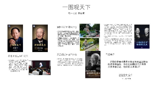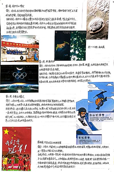 初一4班郑子诚同学的一图观天下选题为“中美苏黎世会晤”,他事后分享自己的准备过程:“我详细的了解了这一次会晤的内容,以及最后达成的共识。我想尽量把每个部分都能详细地播报,可是我做的太认真了,做完一抬头发现家里面静悄悄的,原来已经到凌晨了,家里人都睡着了。但是我没有一点困意,反而心里很兴奋、有一点点的成就感。是啊,我们的祖国越来越强大了,再也不是东割一块地西割一块地的时候了。而是能在国际上平等的沟通,寻求互利共赢,并能达成良好的社会关系。我骄傲自己是中国人!”对于观看其他同学的播报,他亦感慨道“至今,一图观天下举行了很长时间,通过倾听其他同学们的播报,我知道了许多的新闻事件,明白了许多生活的道理。同时一图观天下也丰富了课堂内容,拓宽了我们的视野。正所谓一图观天下,观世间百态。”