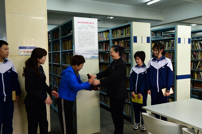 12月18日上午,中学部学生处杨宁主任、团委书记牛志强老师以及师生代表前往赵教授家中接受赠书。赵教授慷慨地将自己几十年收藏的上千册图书赠予我校,她充满深情地说:“只要我捐赠的书籍给哪怕一个学生带来收获,我的赠书就是有价值的。”返校后,学生义工对书籍进行了仔细的整理分类,并盖印纪念章,整齐摆放在图书馆特设的专柜书架上。
