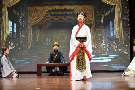 七班给我们带来了《唐雎不辱使命》。刻画出了大义凛然的唐雎、骄傲暴躁的秦王等栩栩如生的角色。