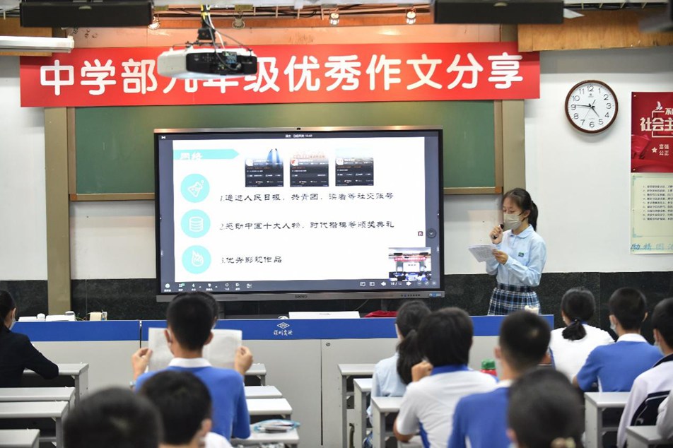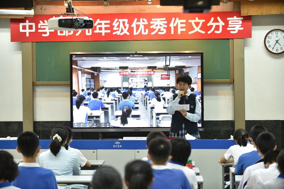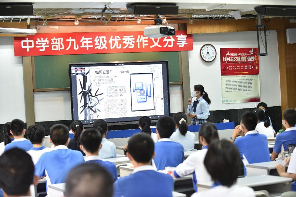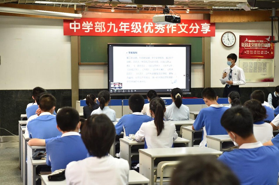 为了让同学在交流中促进学习,在实践中更好地成长,九年级在繁忙的学习中举办了特色读书节活动——作文交流大会。九年级六班的唐熙玥主持了本次活动,中学部副部主任王兵主任、教务处潘浩主任到现场听取同学们的分享。
