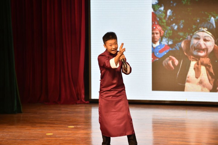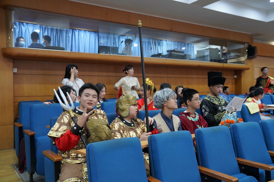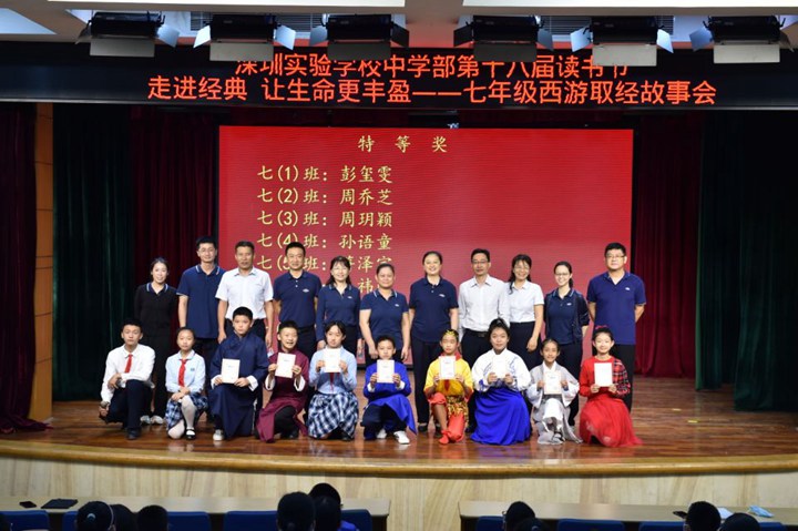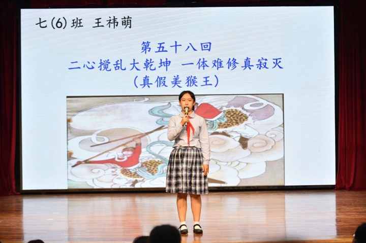 获得特等奖的八位同学获得了在年级展示的机会,他们在舞台上展示了自己独特的风采。这些班级佼佼者不负众望,他们一个个形神兼备、学声情并茂,风格迥异却同样精彩,妙语连珠,把原本就妙趣横生的西游故事讲述得更加引人入胜!