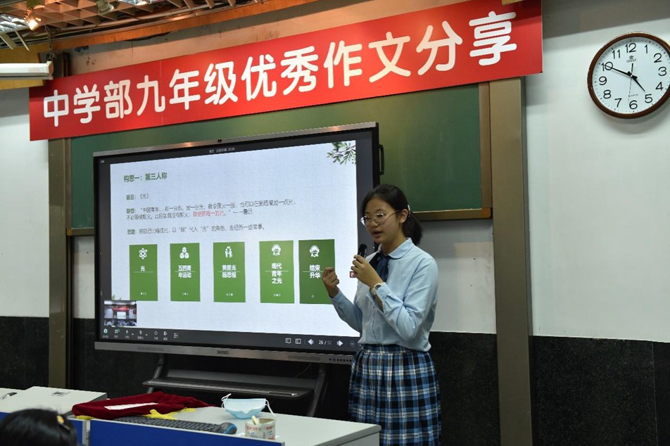 五位同学的发言,从不同的角度带领同学们更好地理解写作的内涵。他山之石可以攻玉,九年级的同学们认真倾听,收获良多。