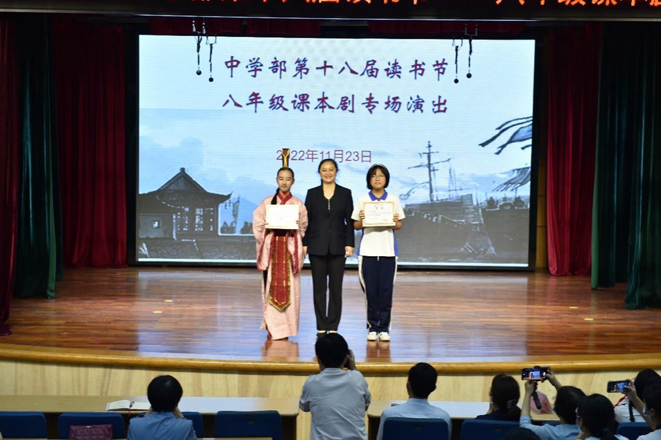 表演之后,评委老师们评出了优秀演员、优秀舞台效果、优秀编剧、优秀节目等奖项。评委代表语文学科主任刘春凤老师做了点评,她充分肯定了同学们的积极性与创造性,呼吁同学们从戏剧里看到人生百态,获得有益的滋养和启示。