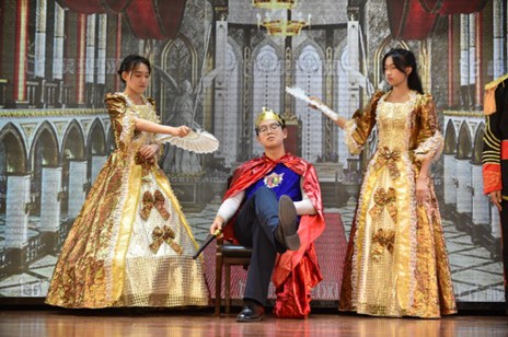三、四班同学共同上演的童话大师安徒生的经典作品——《皇帝的新装》。同学们都耳熟能详的故事,经过演员们对角色深刻的理解以及松弛有度的表演,荒诞可笑的情节引人深思。