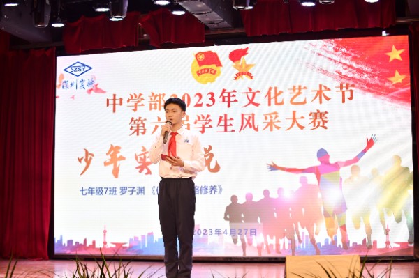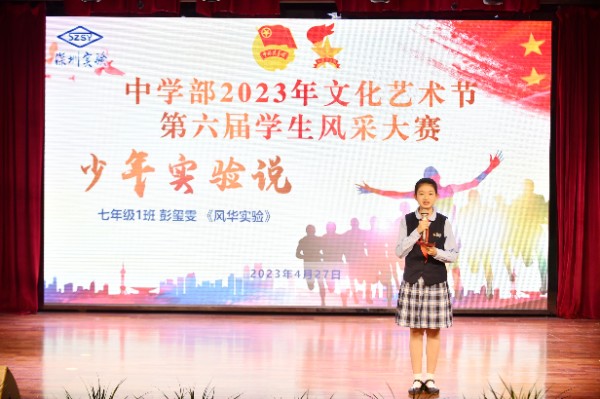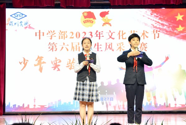 2023年是深圳实验学校建校38周年,校史记录了实验办学的历程,是师生艰苦奋斗的历史。4月27日下午4时,中学部“少年实验说”第六届学生风采大赛在小礼堂正式拉开帷幕,大赛由徐梓潆和郑博文同学共同主持。