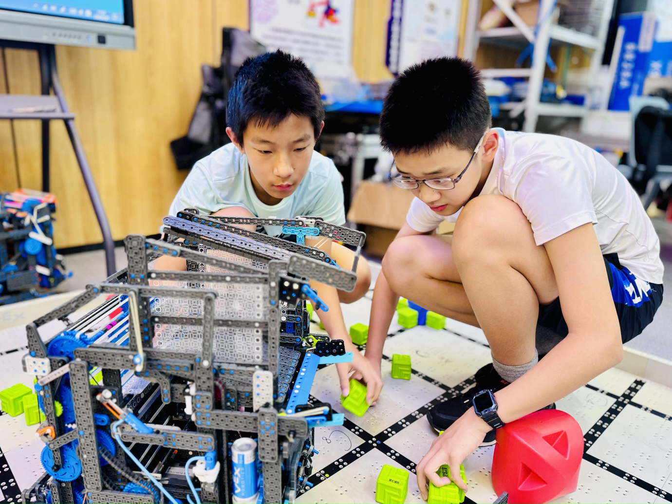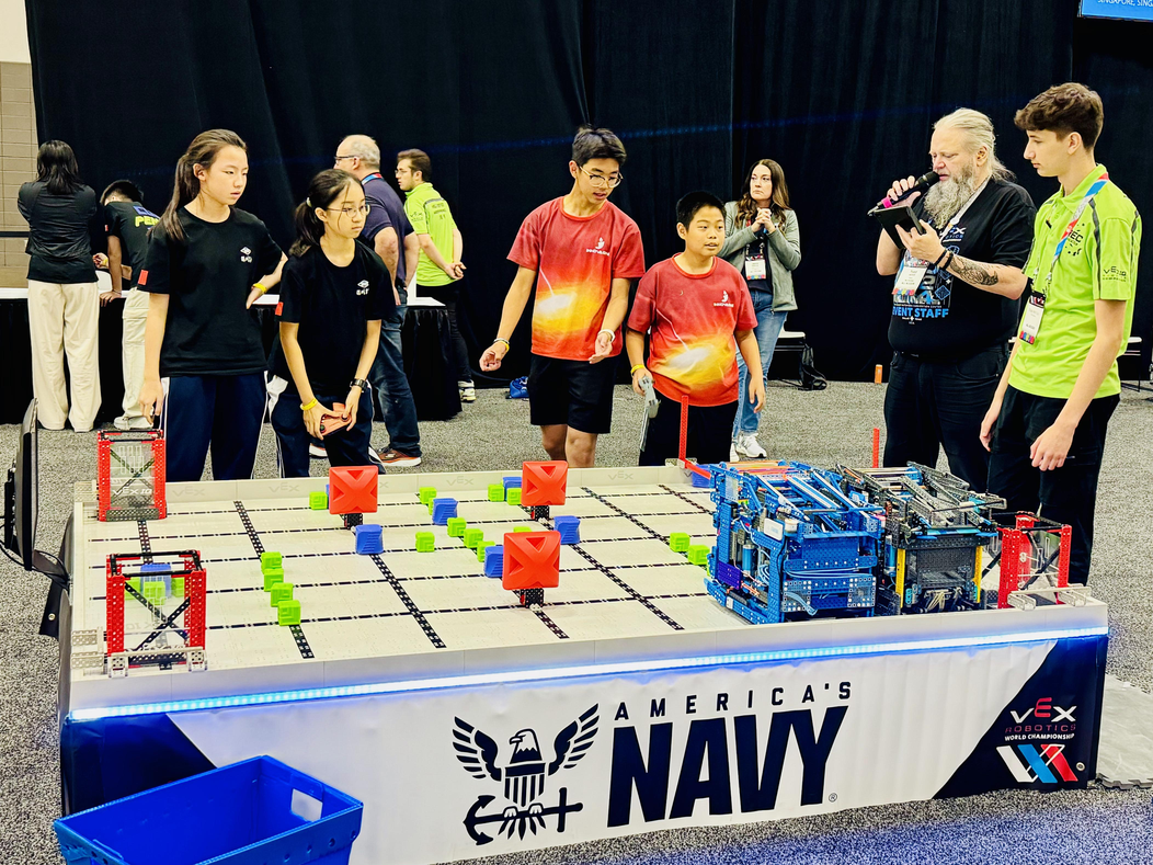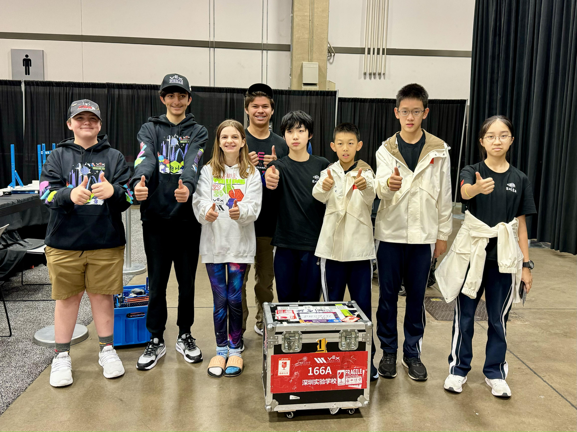 2023-2024赛季VEX机器人世界锦标赛盛况空前,据官方发布的数据统计,此次赛事汇集了来自全球60多个国家地区的两千多支优秀队伍,在为期10天的竞赛中,为观众呈现了一场机器人竞技的盛宴。其中,初中组VEX IQ项目2023-2024赛季VEX机器人世界锦标赛盛况空前,据官方发布的数据统计,此次赛事汇集了来自全球60多个国家地区的两千多支优秀队伍,在为期10天的竞赛中,为观众呈现了一场机器人竞技的盛宴。其中,初中组VEX IQ项目共有412支队伍参赛,竞争异常激烈。我校两支代表队紧密协作,克服时差与语言等多重困难,积极与世界各地的顶尖队伍交流战术与策略,成功从10场高强度的资格赛中脱颖而出,晋级分区决赛。在决赛中,队员们凭借合理的战术策略、出色的操控技术和默契的联队配合,最终分别获得分区赛亚军和第四名的优异成绩。