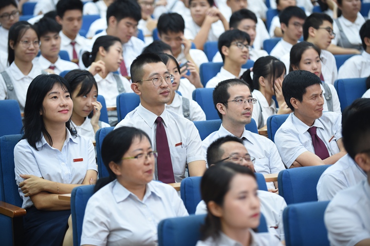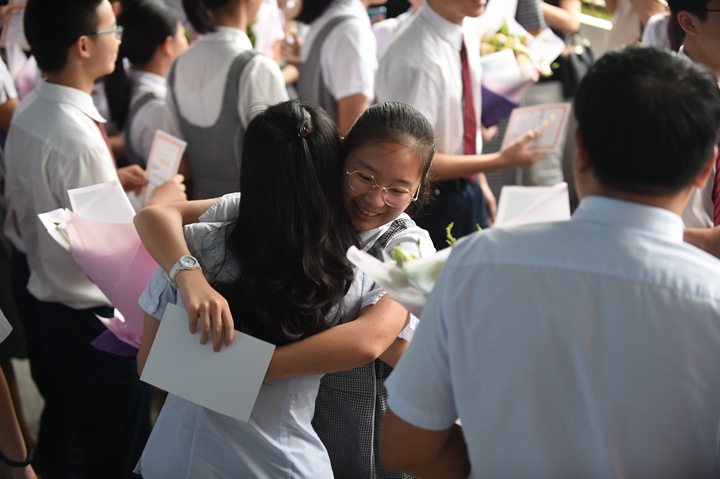 滋养三年,受益终身,这拳拳师生谊、悠悠母校情,在礼堂里穿梭激荡,经久不绝。最后,学生代表为领导和老师们送上美丽的鲜花,深深鞠躬表达敬意。随着骊歌响起,每位同学都与自己亲爱的老师们一一握手、拥抱道别,并送上最真挚的祝福。一句句感恩的话语,一声声加油,一个个深情的拥抱……三年的陪伴与关怀,师生间的情谊将永远烙印心底。