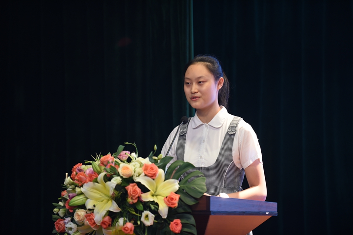 师生一场,值此临别之时,回首过往,自有千万言语嘱咐,教师代表张皓在致辞中说尽了老师们的牵挂与不舍,祝愿同学们在毕业之后拥有朴素高雅的追求、勇敢乐观的品质、感知幸福的能力,在她温柔的话语中,师生们都不禁回忆起从前的点点滴滴,感动之情涌上心头……