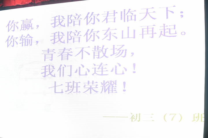 接着,是各班班级文化展示环节,各班代表依次上台,带着他们特有的回忆,让师生们领略了各班的风采,一声声班级口号,一张张班级合照,一个个班级故事,无不展现着各班这三年独有的默契与感情,散发着珍珠般的光芒。