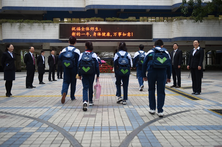 春风送暖,绿满校园。踏着春天的脚步,带着新的心情、新的希望、新的目标,迎来新的学期。2月18日开学第一天,中学部部分干部和年级主任一早来到校门口迎候师生,迎接新学新的开始。