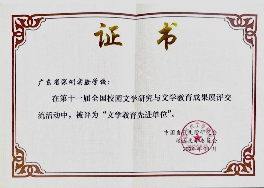 2024年11月,在第十一届全国校园文学研究与文学教育成果展评交流活动中,我校获评“文学教育先进单位”。