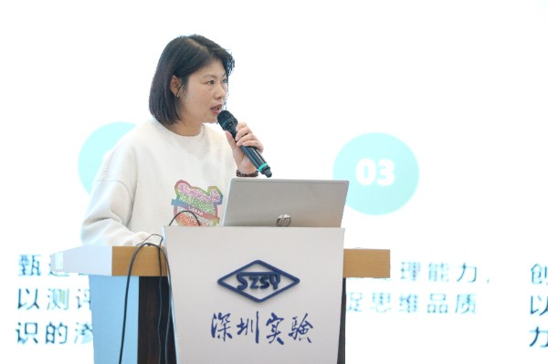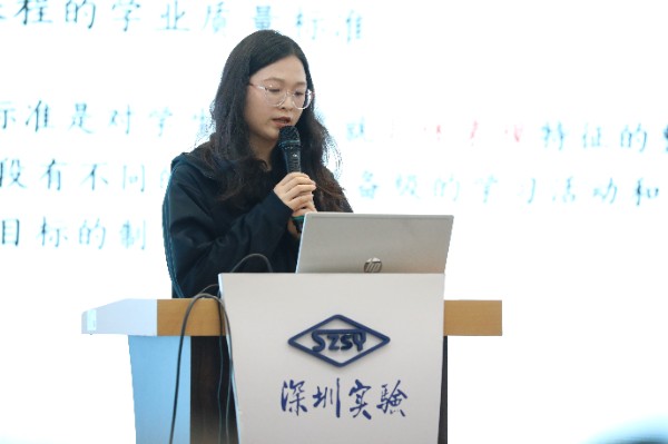 深圳实验学校坂田部小学的孟杉老师提出,要从知识本位转向素养导向,采用项目式、探索式学习等教学方法,让学生在自主学习和合作学习中提升学生语言运用和思维能力。深圳高级中学北校区的赵可老师深入浅出地讲解了英语课程各阶段学业质量标准,强调学生学习能力应逐步提升。深圳高级中学东校区的卞怡老师结合教学经验,提出学生应成为评价的参与者,根据学业质量标准反推教学,命题和作业形式要多元化,融入真实情境。