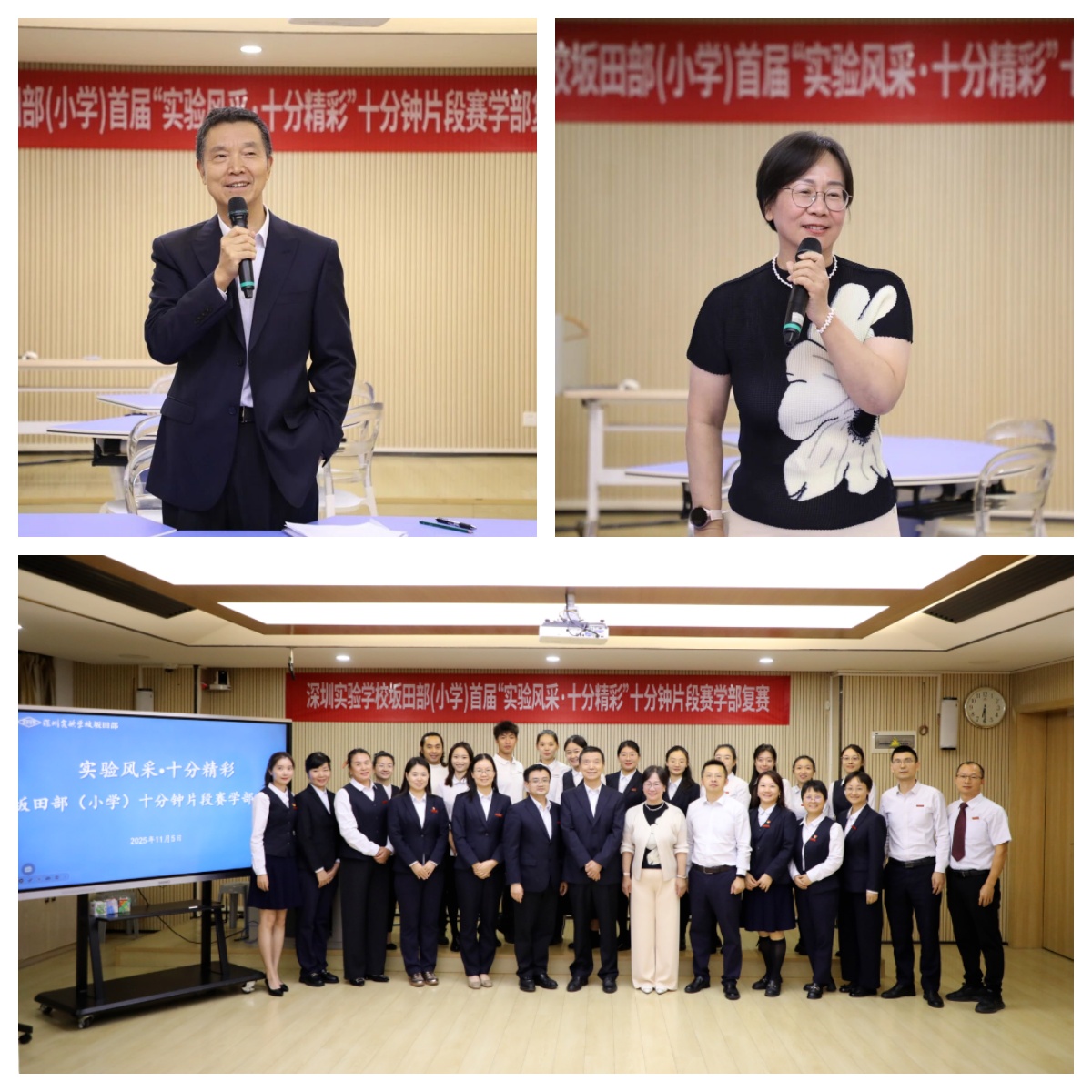 2025年11月5日,深圳实验学校坂田部(小学)首届“实验风采·十分精彩”十分钟片段赛学部复赛顺利举行。12位来自人文语言、数理科学和艺体综合组的参赛教师,带着精心准备的教学设计,为大家呈现了一场浓缩精华的课堂。