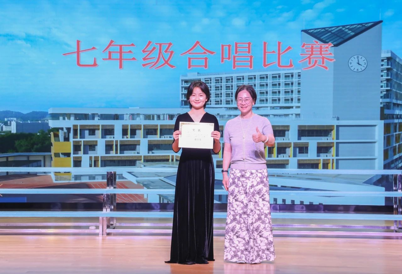 四十年栉风沐雨,学子们用歌声重温校园记忆。舞台上,学子们以多元形式诠释对母校的深情:他们将实验精神化作铿锵口号融入歌曲间奏,把《深圳实验的日子》歌词改编成班级专属的“青春日记”;用行动献礼校庆,以光影致敬岁月……从“唱一首歌”中领悟协作之美,到“登一次台”时绽放自信之美,再到“创一个作品”中雕琢匠心之美。“美育是温润心灵、涵养人格的慢艺术”,我们看到的不仅是今日舞台上的璀璨星光,更是实验学子未来人生中“认识美、热爱美、传播美”的种子正在生根发芽。