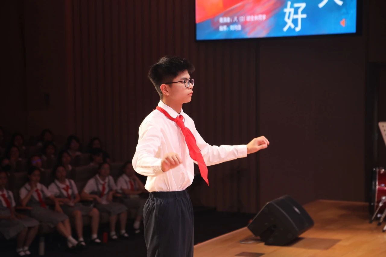 艺术节现场,七、八年级全体学生以班级为单位登台献唱。从经典传唱到青春新声,从深情讴歌到激昂誓言,每一个音符都承载着对学校40周年华诞的祝福。舞台上,整齐的队列、创意的编排、自信的笑容,展现的不仅是艺术的魅力,更是班级凝聚力的生动缩影。