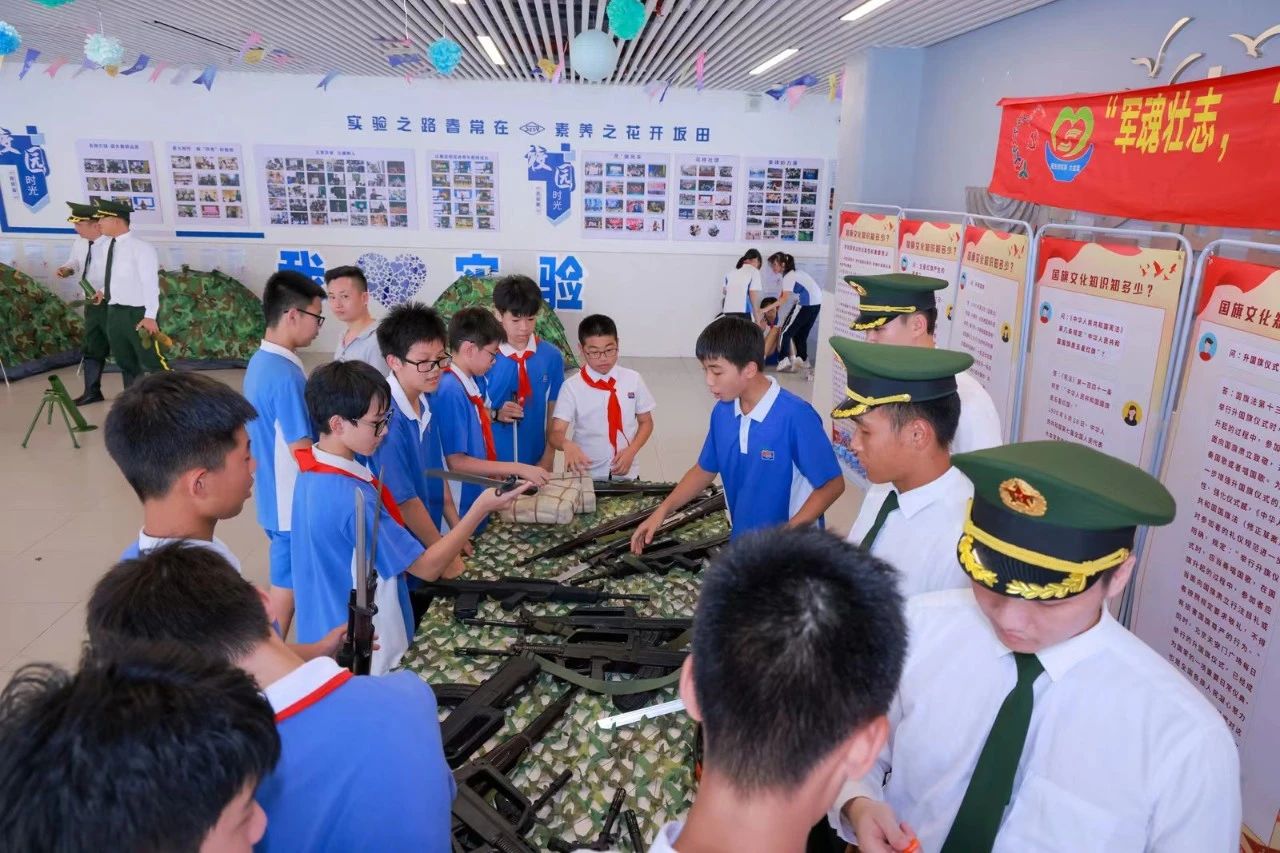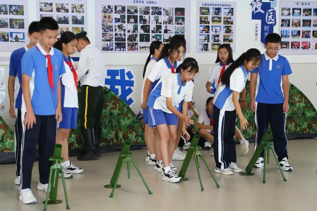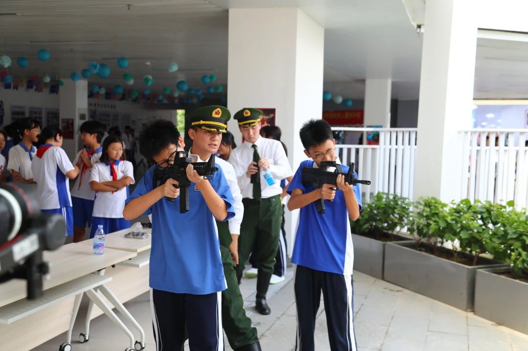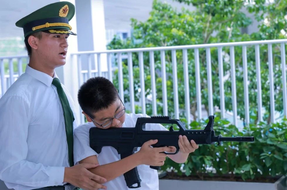 开展国防教育既是国防建设的需要,也是培养学生爱国情操的具体表现。在服务站的大力协助下,坂田部本次开展的国防教育体验活动包括国防武器装备展示、讲解与模拟操作。活动中,同学们近距离地感受了95式自动步枪、迫击炮、中正式自动步枪、手榴弹、挂墙十大英模系列图片、国旗、党旗、军旗、中国工农红军旗等展品,深受教育和鼓舞。