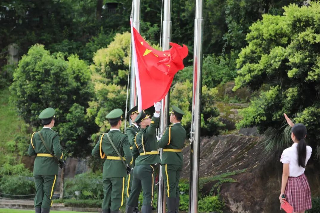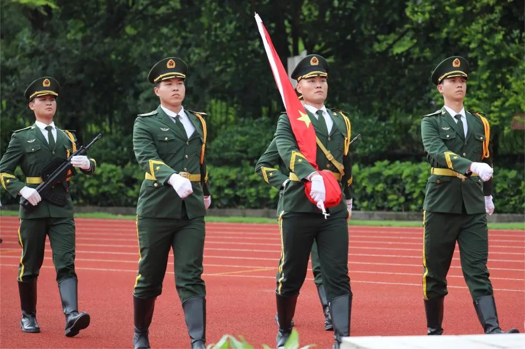 7月1日清晨,坂田部组织全体师生近四千人参加庆祝中国共产党成立103周年大晨会。在雄壮的国歌声中,受邀而来的原天安门国旗护卫队陆军护旗手震撼登场,为大家带来了一场庄严的升旗仪式,师生们接受了一次零距离的精神洗礼。