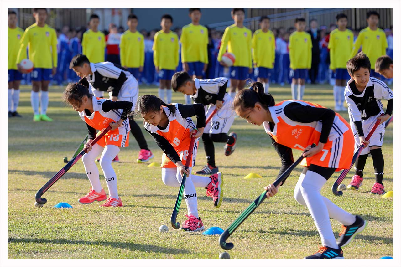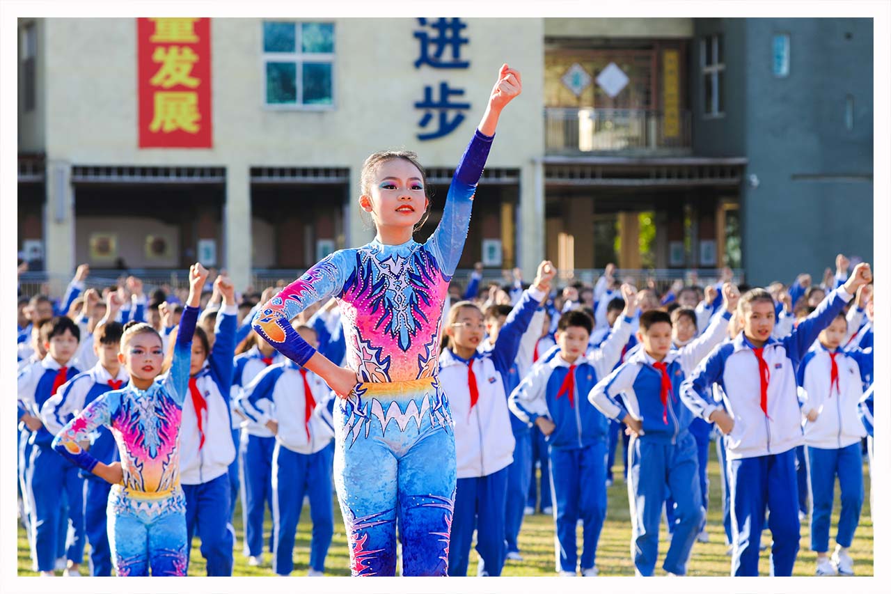 随着《万疆》音乐响起,七、八年级学生与校合唱团共同表演手语操,传递对“吾国万疆”的深深祝福,对党和人民的浓浓深情。五(4)班、六(6)班、七(5)班以及校健美操队的健美操串烧彰显出青春的奕奕神采。校足球队、校曲棍球队精彩亮相,在绿茵场上尽展英姿。最后,二至六年级小学生展示了五套校园特色活力操。孩子们个个精神抖擞、动作整齐,展现出坂田校区学子阳光向上的文明风貌。