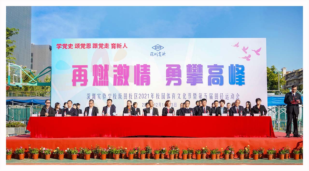 学党史,颂党恩,跟党走,育新人。12月1日下午,坂田校区举办了“再燃激情,勇攀高峰”2021年体育文化节暨第五届田径运动会开幕式。深圳实验学校校长衷敬高,深圳实验学校副校长、中学部执行校长龙萍,深圳实验学校副校长、初中部执行校长邓旭,小学部执行校长顾兵,深圳实验光明学校校长王喜峰,集团部门领导和各兄弟学部领导以及家长代表亲临现场。开幕式由坂田校区初中部部主任吴立刚主持。