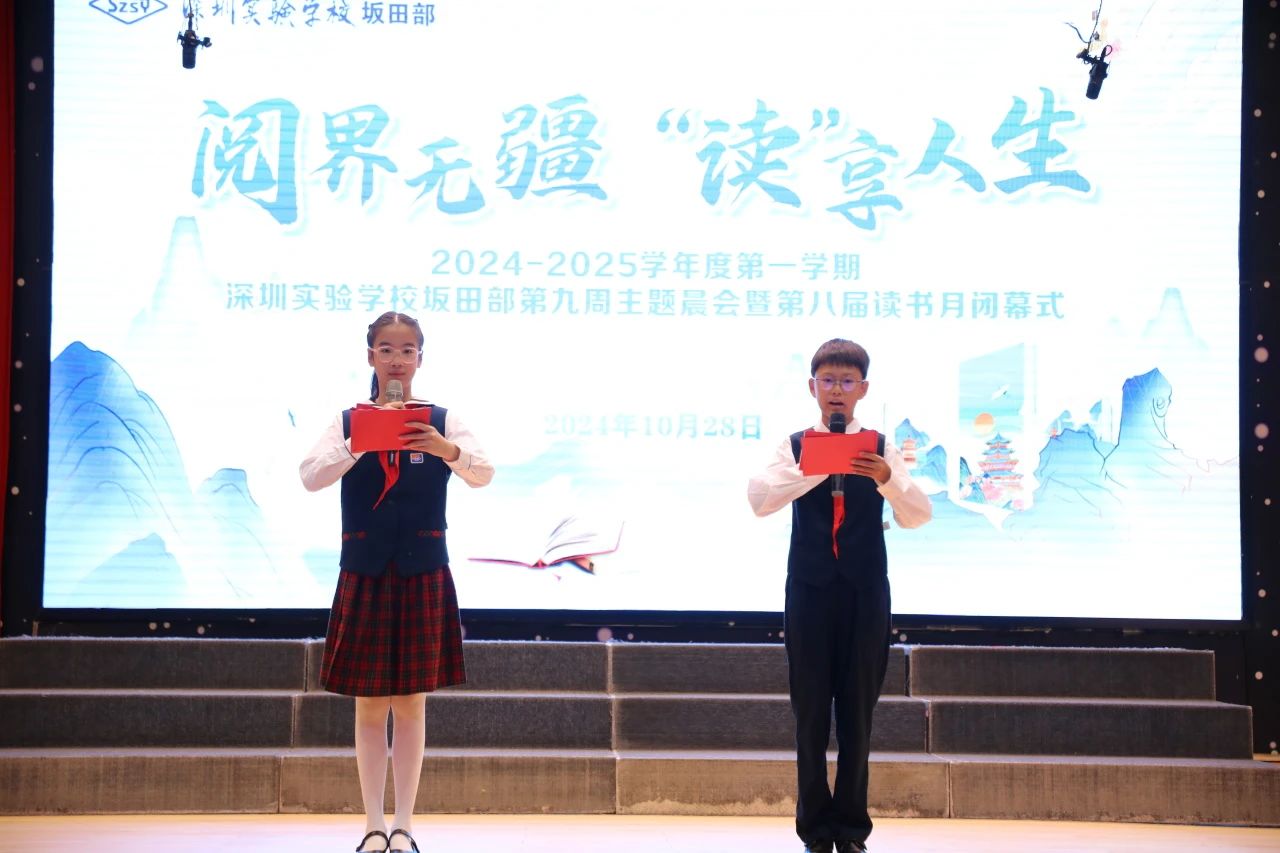 书香满园,阅读不止。深圳实验学校坂田部第八届读书月闭幕式于文体馆举行。此次读书月,坂田部小学开展了以“‘阅’见成长,奇趣无限”为主题的英语活动周和以“阅界无疆 读‘享’人生”为主题的语文活动周。各年级组织了精彩的语文和英语展评、展演与文化活动。学生们遨游在阅读的海洋里,浸润在多样的语言环境中;在活动中体验着阅读的快乐,在竞技中感受着学习的魅力。