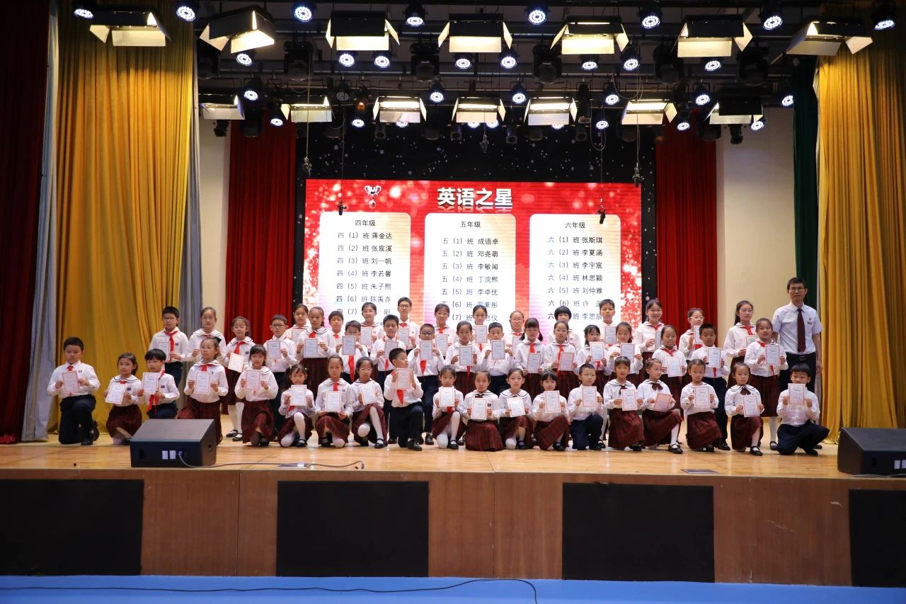 最后是颁奖环节。在英语的乐园里,他们是最快乐的学习者。他们用流利的英语唱歌、讲故事,与世界交朋友。小学教务处温荫明主任为获得“英语之星”的同学颁奖。