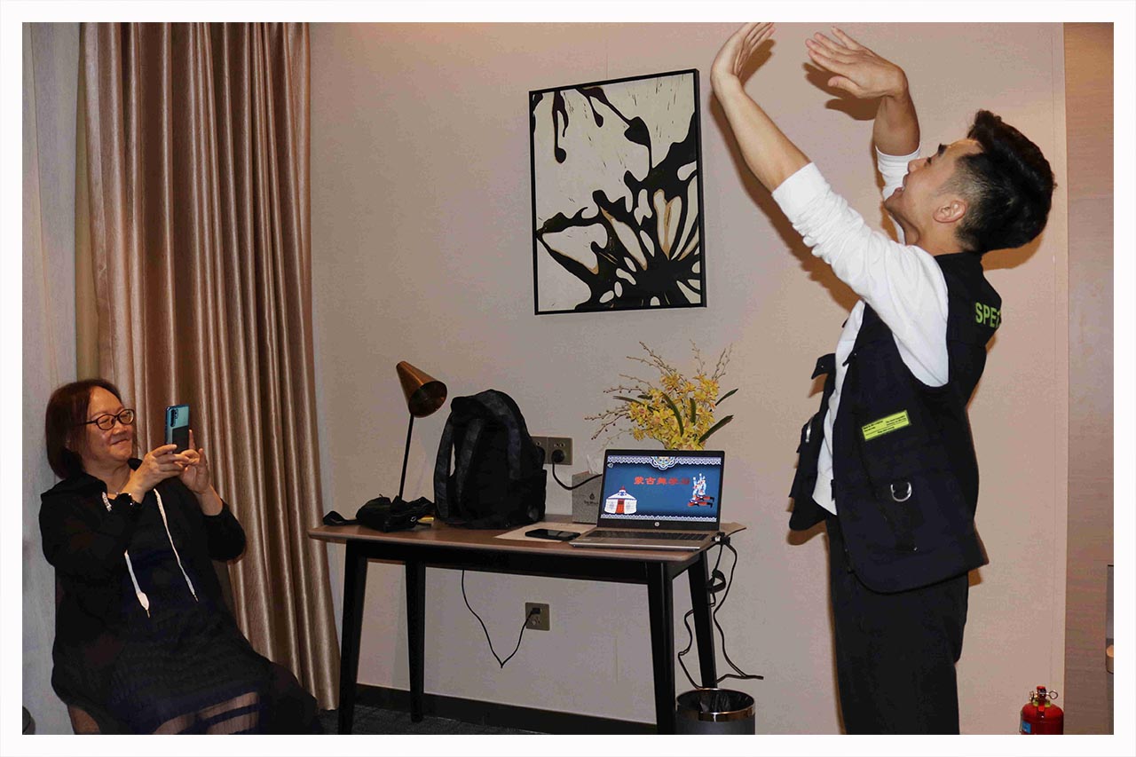 模拟课堂,尤远梯老师推出构思已久的课例:蒙古舞《快乐的小骑手》。精妙的设计让学生快速进入情景,辽阔丰美阔的大草原如在眼前。教学环节丝丝入扣,互动生成和展示体验如行云流水,现场评委和工作人员竟也随着音乐舞动起来。进入说课环节,尤老师情绪稳定,语言流畅,既有高度又有温度,沉着的应变和即兴发挥打动了所有评委。尤老师也是全场唯一一位获得专家书面点赞的选手,一位评委一连写出“四个非常”:基本功非常扎实;分解动作非常到位;教学设计非常合理、科学;语言、教态感染力非常强。