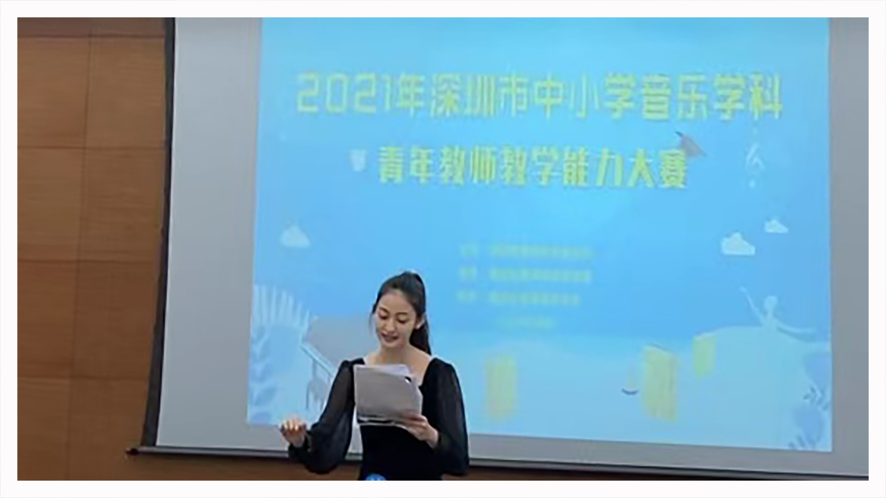 时间回溯到2021年7月12日,深圳市举办首届美育教师教学基本功比赛,尤远梯老师参加。经过初赛、复赛、决赛(现场集中评审)各环节,尤远梯老师闯关成功,脱颖而出,勇夺一等奖。随后获市里推荐,代表深圳市出征广东省首届美育教师教学基本功大赛。