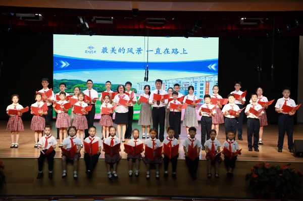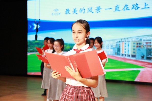 今年,孩子们最敬爱的冯景华副校长即将荣退,坂田校区迎回了跟随冯校长全程参与调研和接办的王喜峰副校长。王校长将从冯校长手中接过重任,在这个历史性的时刻,两位校长和学生代表以诗传情,通过一首诗朗诵《最美的风景 一直在路上》,为我们讲述实验的传承故事。