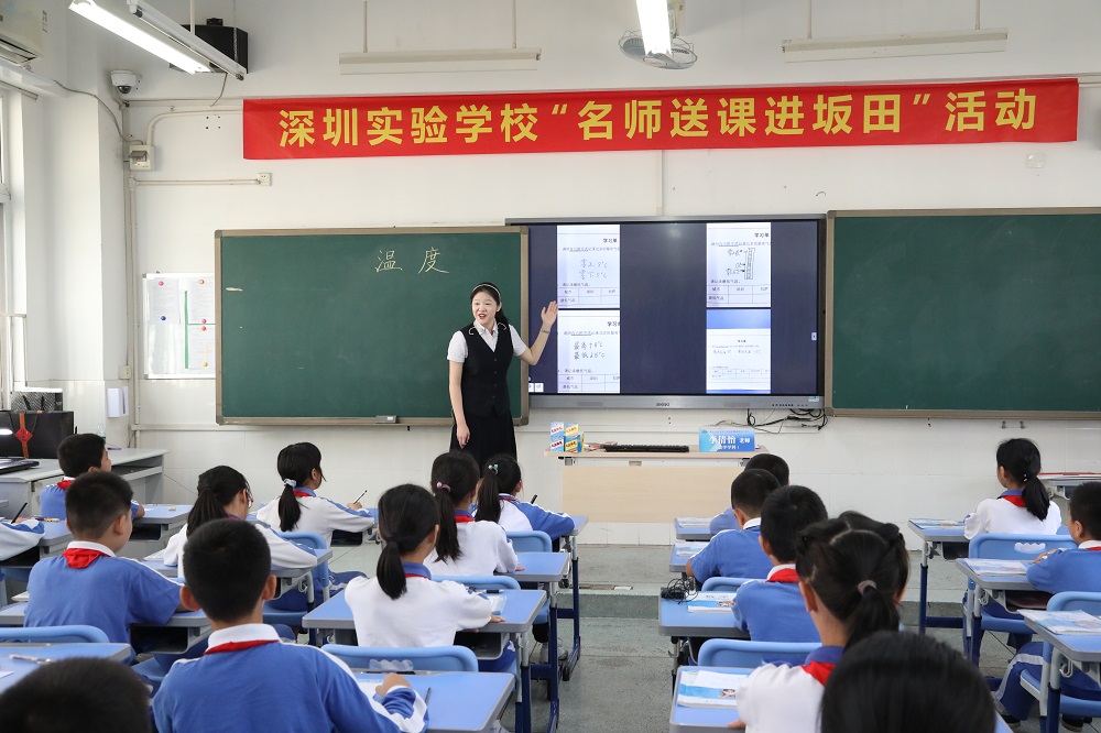 此次“名师送课进坂田”活动由小学部送来5节示范课,涵盖语文、数学、英语、科学、道德与法治五个学科。集团及兄弟学部领导、同仁或亲临坂田部指导交流,或在线观看直播,共同参与听课、评课活动。