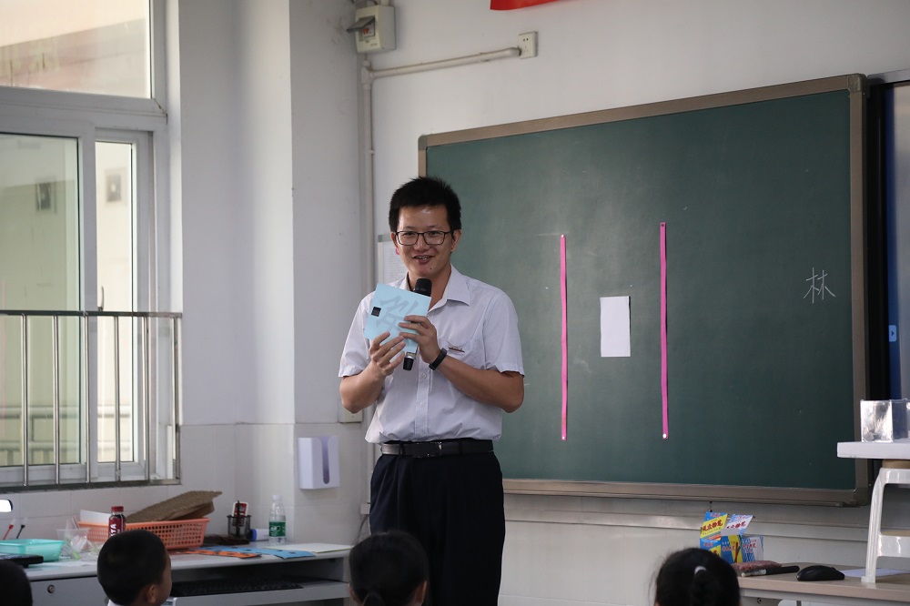 24日上午第一节,林景武老师执教二年级的科学课——《神奇的纸》。林老师就地取材,以自己的姓氏“林”拉开了本节课的探究话题“纸”。“一张纸可以用来做什么?”引发学生探究兴趣,学生瞬间融入课堂。林老师顺势抛出探究任务“白纸放在架上能否承受木块重量”。他通过展示实验,启迪学生思考,并组织学生亲自动手操作、验证,再一一展示孩子们的探究成果,引导孩子们探索发现改变形状可以改变一张纸的性能。接着林老师又带来一张神奇的纸,孩子们拿着放大镜仔细观察,再往上面滴水发现神奇的纸既吸水又防水,因此老师和同学们又展开新一轮的讨论和实验:纸的防水原因?临近下课,林老师竟然站在一张用纸做的“凳子”上,让孩子们对“神奇的纸”充满了无限的好奇。