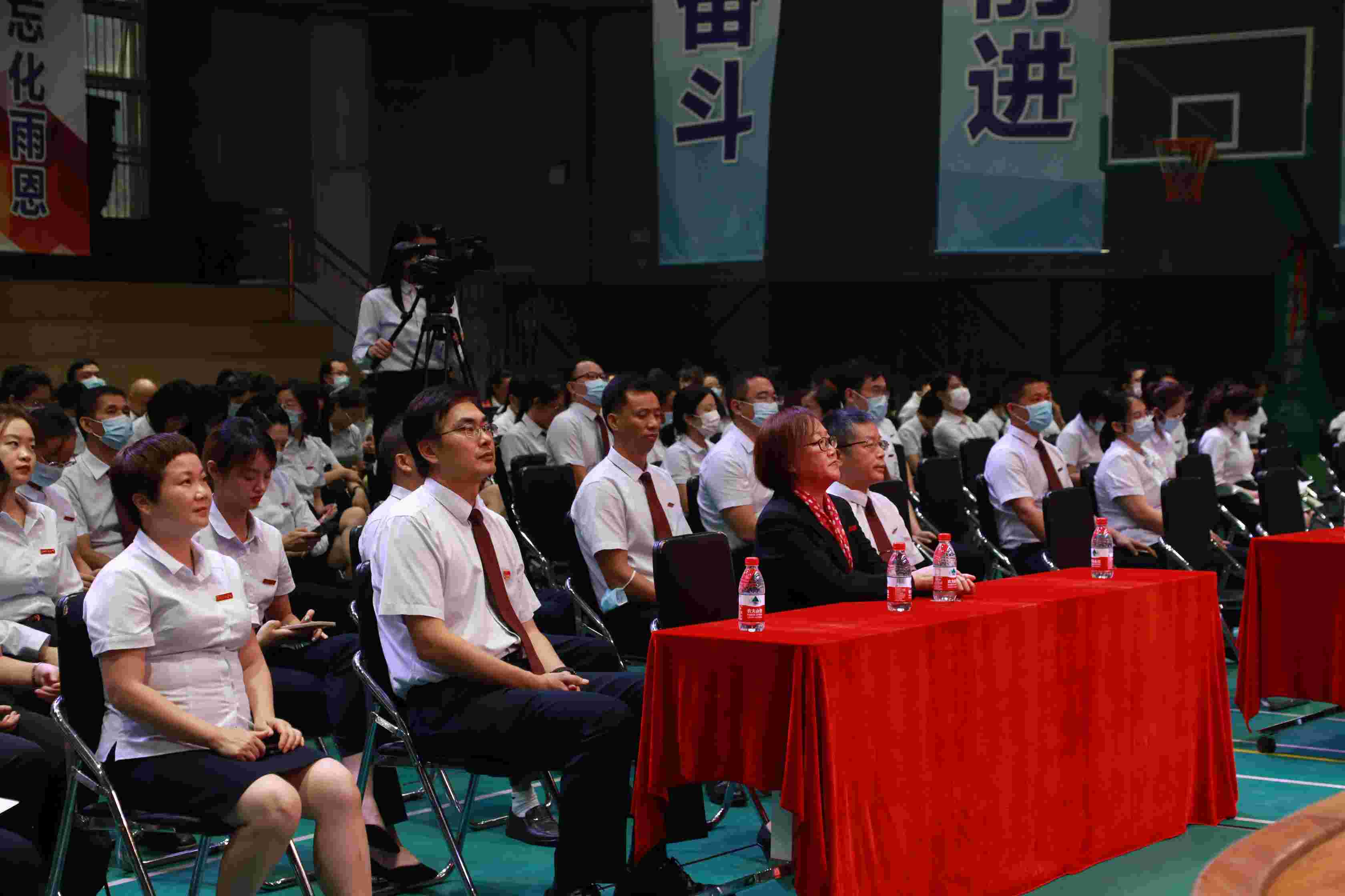 百年大计,教育为本。教育大计,教师为本。随着深圳实验学校坂田校区“内涵发展,特色发展,高质量发展”第二个三年发展目标的开启,坂田校区的老师们勇敢担当教育使命,坚定前进信心,栽下遍地桃李,留得满园芬芳,开创了学校发展新篇章。2021年9月16日,坂田校区召开了以“党建引领促发展 育新人 兴文化 展形象”为主题的教工大会。坂田校区执行校长冯景华、校区小学部负责人吴立新主任、校区初中部负责人吴立刚主任及全体教职工参加了会议。