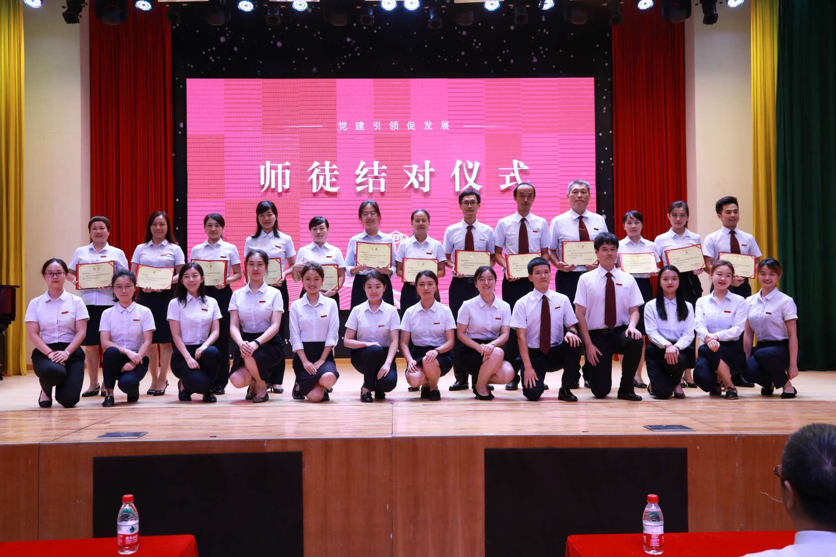 学校的发展蒸蒸日上,教工队伍也在不断壮大。今年又有年轻的老师加入坂田校区行列。专业的成长需要师傅引领。大会的第二项是师徒结对仪式。冯校长为师傅们颁发聘书。徒弟们的拜师口号铿锵有力,掷地有声。全体教工一同见证师徒结对,青年教师们将在师傅的带领传承中,更扎实、快速地成长,教工队伍也将越来越强大。