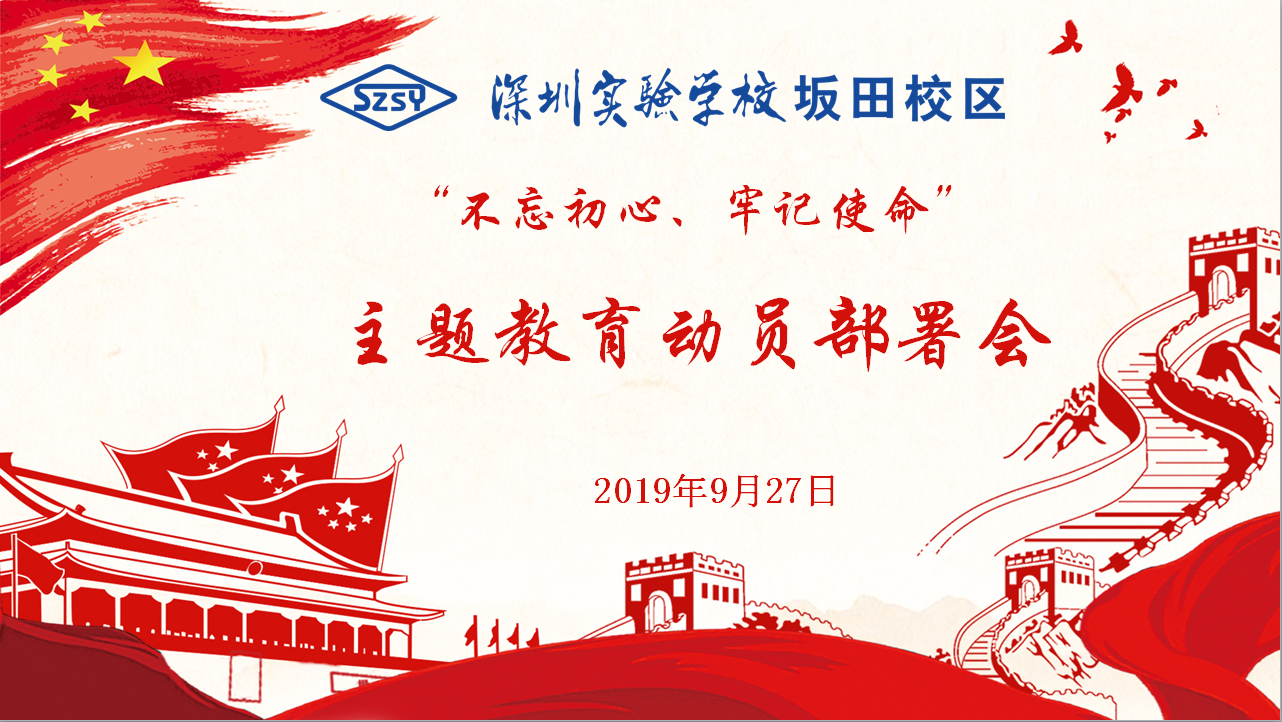 开学后,坂田部召开新学期全体教工大会暨坂田校区“不忘初心、牢记使命”主题教育动员部署会,认真学习关于主题教育的最新要求,充分认识开展主题教育的重大意义,准确把握主题教育的目标任务。党总支书记冯景华同志结合坂田部新学期工作作主题教育动员部署讲话。