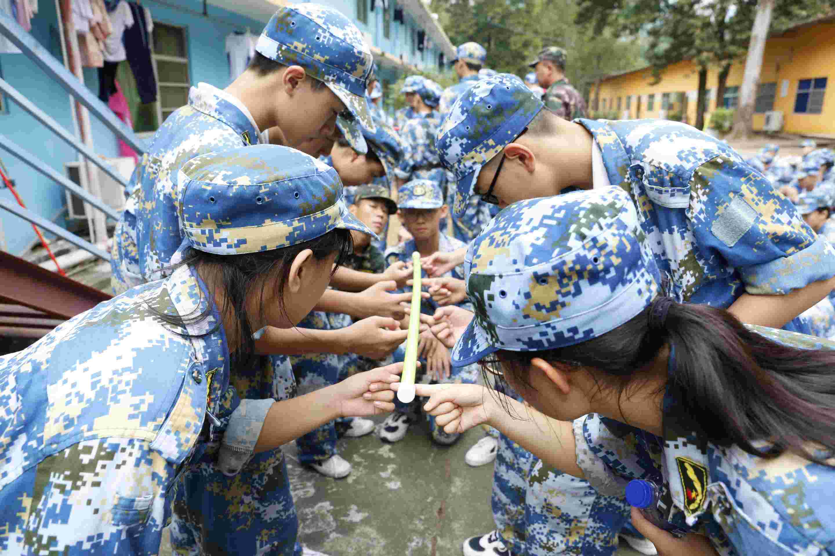八年级开展了以“青春起航,熔炼团队”为主题的国防教育活动。五天里,同学们一起合作完成了“齐眉棍”“鼓舞飞扬”“团队浮桥”“成功墙”“龙虎拳”等活动项目。在一个个挑战项目中,学生们齐心协力拧成一股绳,最终将不可能变成了可能。